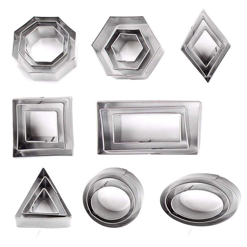 - Baking Tools Cookie Cutter Set (24 Pieces/Set) Mini Fruit Shapes Stainless Steel Metal Round Square Cutter for Kitchen.