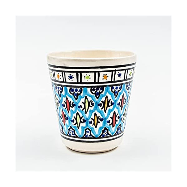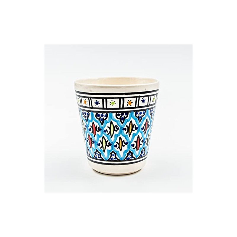 - Beautiful gift idea. Glass completely made and decorated by hand. Water glass ideal for decorating your table. Juice glass that you can match with a matching turquoise Bakir model. Capacity: 300 ml. Diameter: 9 cm. Height: 10 cm. Lead free. Dishwasher-safe