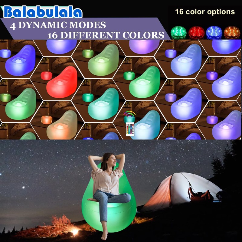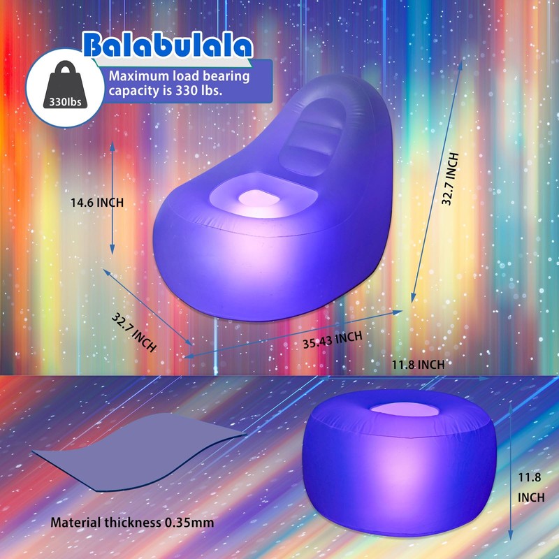 Balabulala Self-Inflatable LED Couch,Illuminated Blow Up Lounger Chair,Light ...