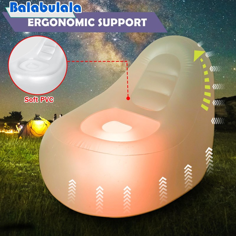 Balabulala Self-Inflatable LED Couch,Illuminated Blow Up Lounger Chair,Light Folding Air Chair for Kids and Adults,Inflatable Game Sofa Perfect for Rooms, Camping or Home