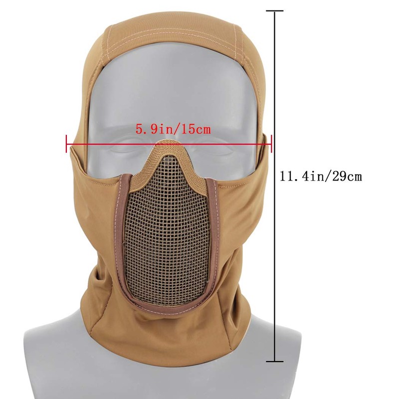 Balaclava Airsoft Mesh Mask, Ninja Style Full Face Protection Balaclava Hood with Mesh Mask for Cs War Game, BB Gun,Hunting,Paintball (Tan)