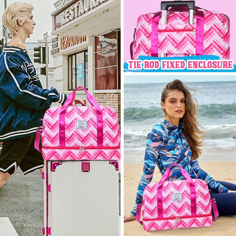 Balakaka Travel Bag Women's Sports Bag 42.5 L, Large Hand Luggage Bag with Shoe Compartment & Wet Compartment, Waterproof Weekender Bag, Swimming Bag with Trolley Straps for Fitness and Travel, pink