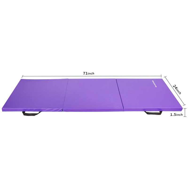 BalanceFrom 1.5" Thick Tri-Fold Folding Exercise Mat with Carrying Handles for MMA, Gymnastics and Home Gym Protective Flooring (Purple)