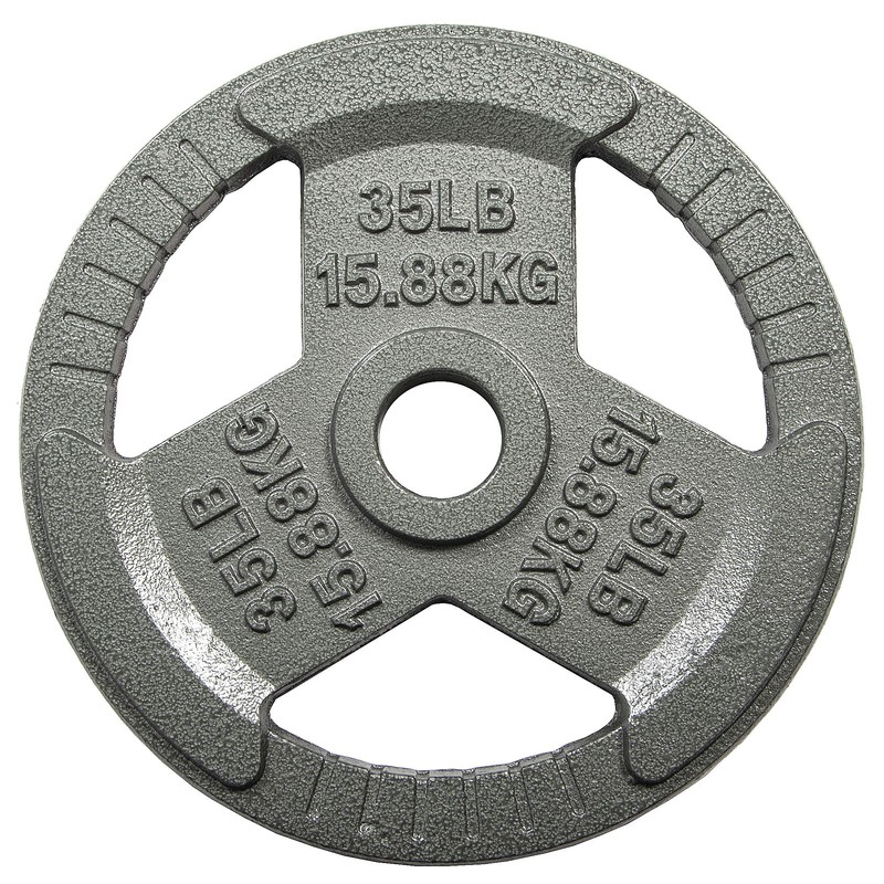 - Each plate has 3 large openings with strips on them for easy grip. Labeled in both LB and KG for easy recognition