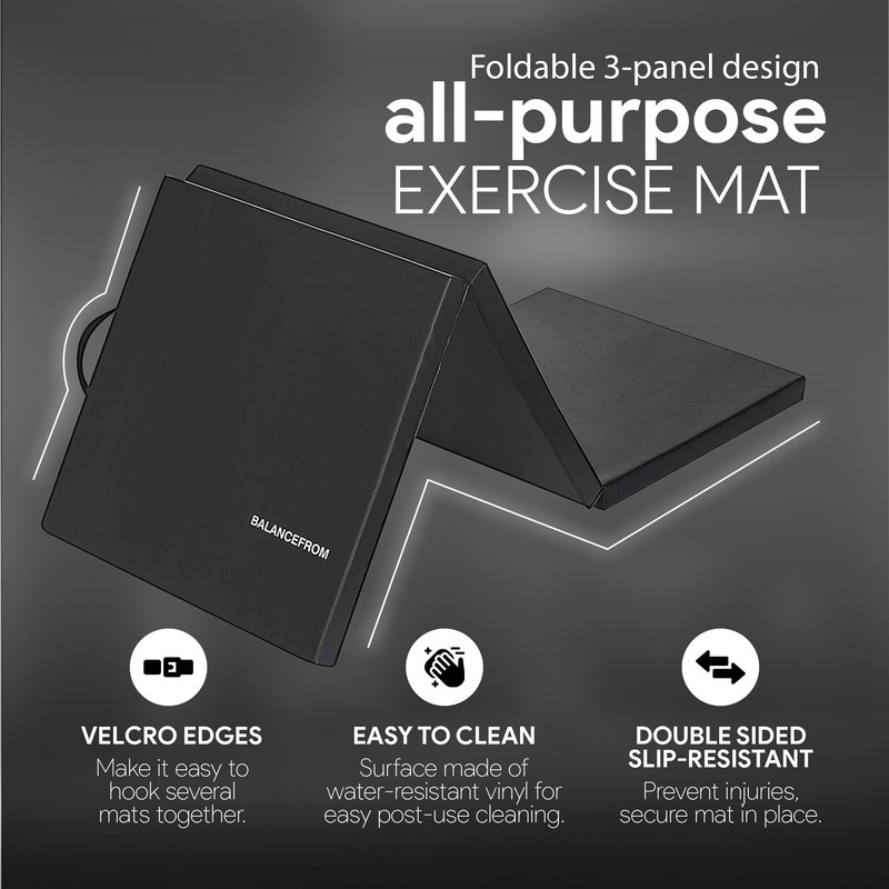 - Moisture Wicking: Foldable, 3-panel design with a velcro carrying strap for easy storage and transportation; Ideal for activities and exercises such as yoga, aerobics, pilates, and martial arts