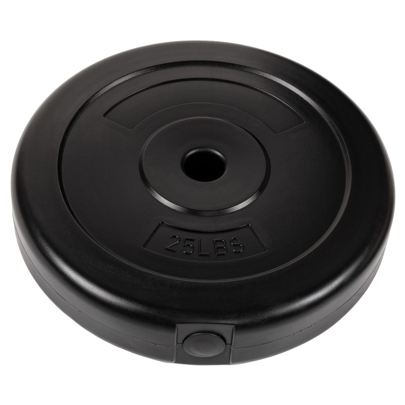 - Made of thick vinyl shell filled with cement with a 1-inch center hole fits any Standard bar with diameter 1” or less