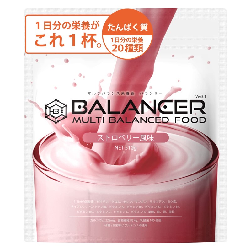 BALANCER バランサー 510g ストロベリー風味 30杯分 20種類の栄養1日分が摂れる 栄養ドリンク 人工甘味料不使用 置き換えダイエット