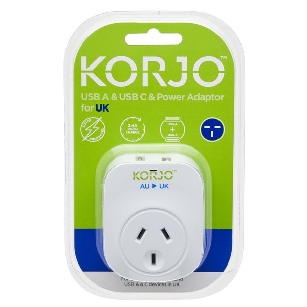 Balanzza Korjo USB A+C - UK Converts One Socket Into AUS/NZ Plus USB-C, White, 55 cm