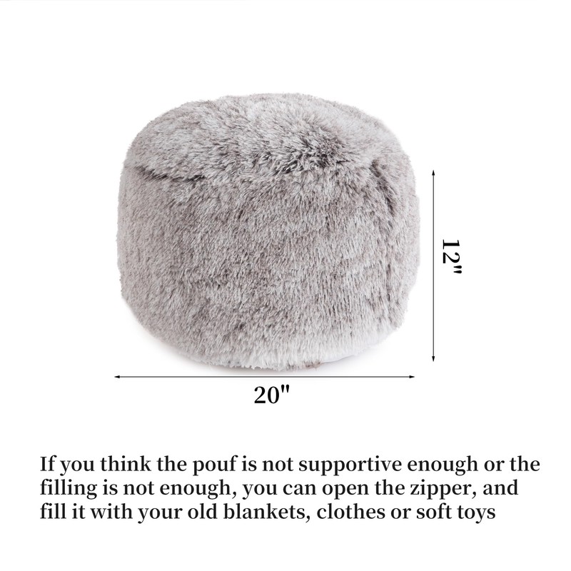 - 【Shaggy Faux Fur】This modern style indoor pouf cushion cover is made from fluffy fiber polyester,Plush fiber with non slip backing,and it is more comfortable than the hard ottoman to rest your feet for long time. You don't need to add extra padding, which will save you a lot of money. This pouf ottoman comes with a liner, so you don't have to worry about storing of the padding and it won't leak out