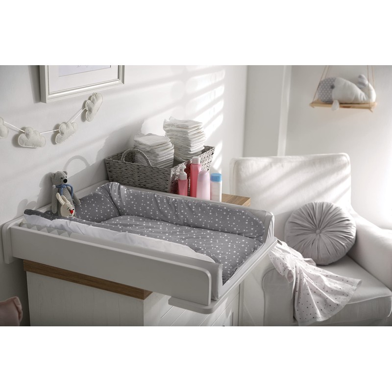 A chest of drawers changing mat is a great solution, but not everyone fulfils their purpose in sufficient quantity. Some changing mats and covers can be hard and rough and break quickly. Our product is soft and offers the child the highest level of comfort. With our changing mat, this does not have to be an annoying activity. The product is available in different sizes and the changing mat is narrow, so that the child cannot fidget freely, preventing nappy changes. The changing mat has the advantage that the separately available changing mats can be changed quickly and easily. This ensures a very long service life of the product. Our changing mat is easy to wash in the washing machine or by hand. It is very practical and saves a lot of time that is constantly missing when taking care of a toddler. If you want to keep your child's changing mat clean for longer, simply place a towel or changing mat on it - your toddler will thank you.