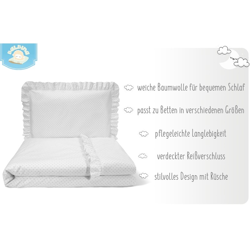 balbina Children's Bed Linen Cotton, 2-Piece Baby Bed Linen Set for Children, Bed Linen with Ruffle & Zip, Duvet Cover 100 x 135 cm and Pillowcase 60 x 40 cm, Dots