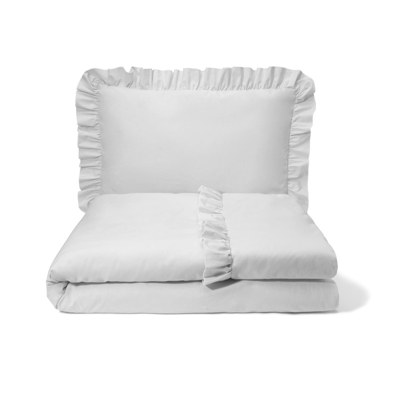 - COMPLETE FEATURES Our two-piece bedding set includes a duvet cover (135 x 100 cm) and for a pillow (60 x 40 cm). Both covers are made from high quality soft cotton fabrics and feature a concealed zip. The bedding is finished with a decorative ruffle that adds a touch of elegance
