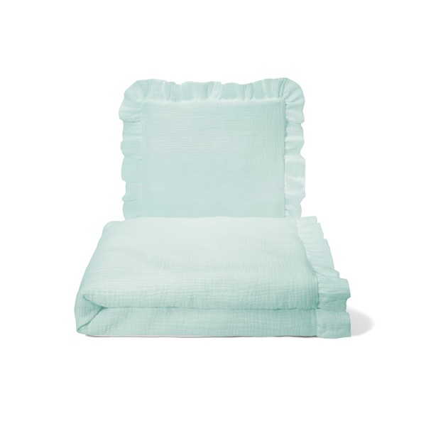 balbina Muslin Duvet Set 2 Piece Set for Kids Breathable & Machine Washable with Filling 75 x 100 cm Baby Blanket with 40 x 40 cm Pillow Sage Green
