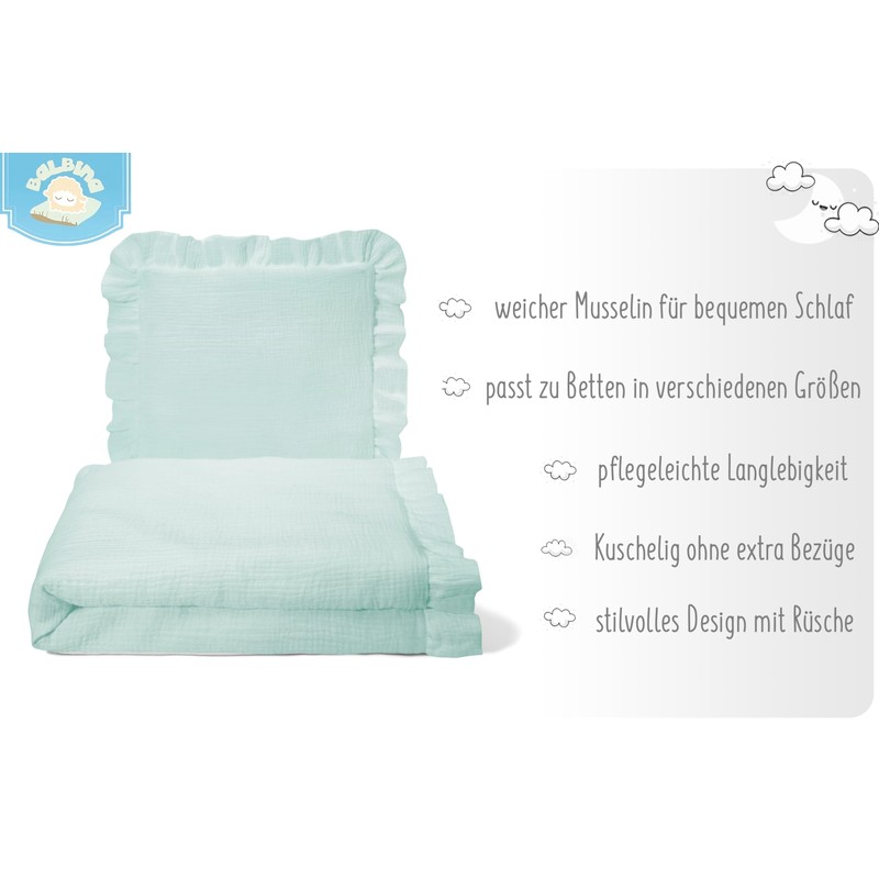 • Aesthetic design: with lovingly designed ruffles and in neutral colours, the bedding set blends harmoniously into any child's room. It can be combined with other furnishings and becomes a stylish eye-catcher