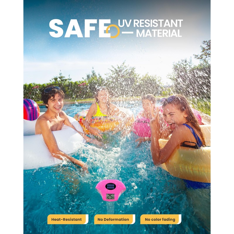 - High Quality and Safe MaterialThe pool thermometer wireless is made of high quality shatterproof material, high temperature resistant, UV ultraviolet resistant, no deformation, no color fading, you don't need to worry that this pool thermometer will be harmful to the pool and human body.Therefore, it can also be used as a bath thermometer.