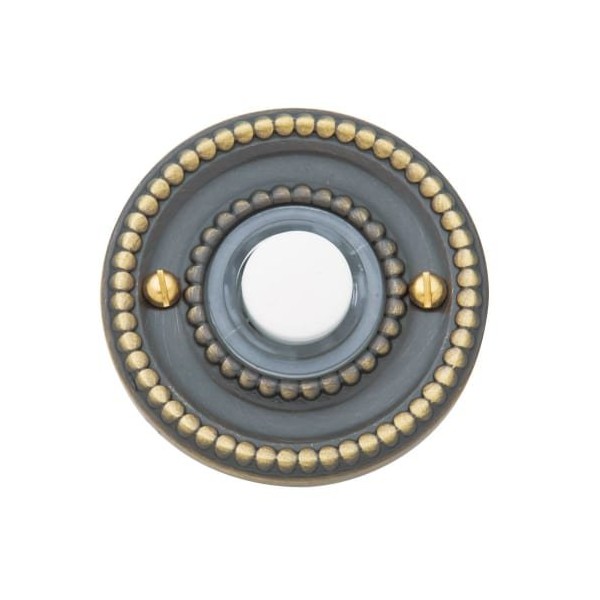 Baldwin 4850 1-3/4 Inch Diameter Beaded Bell Button, Satin Brass and Black