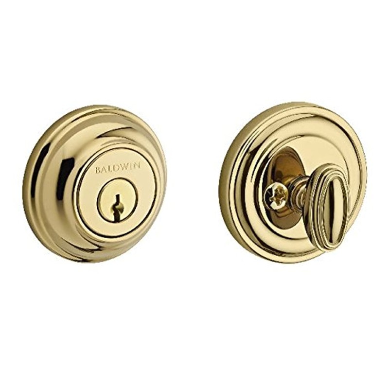 Product Specifications: SKU: SCTRD003S Finish: Polished Brass Manufactured By: Baldwin Backset: Adjustable 2-3/8" or 2-3/4", 2-3/8", 2-3/4" Cross Bore: 2-1/8" Door Thickness: 2-3/8", 1-3/4", 2", 2-1/4", 1-7/8", 2-1/8", 2-1/2" Edge Bore: 1" Exterior Height: 2.6 in. Exterior Projection: 1.4375 Exterior Width: 2.6 in. Interior Height: 2.6 in. Interior Width: 2.6 in. Configuration: Deadbolt Cylinder: SmartKey 5 Pin Function: Keyed Entry, Single Cylinder Keyway: KW1 Latch Faceplate: Drive-In, Round Corner, Square Corner Material: Brass Solid Construction: Solid Brass Theme: Traditional SmartKey: Yes BHMA Certification: Grade 2 Collection: Reserve Product Class: Residential Series: Traditional Round