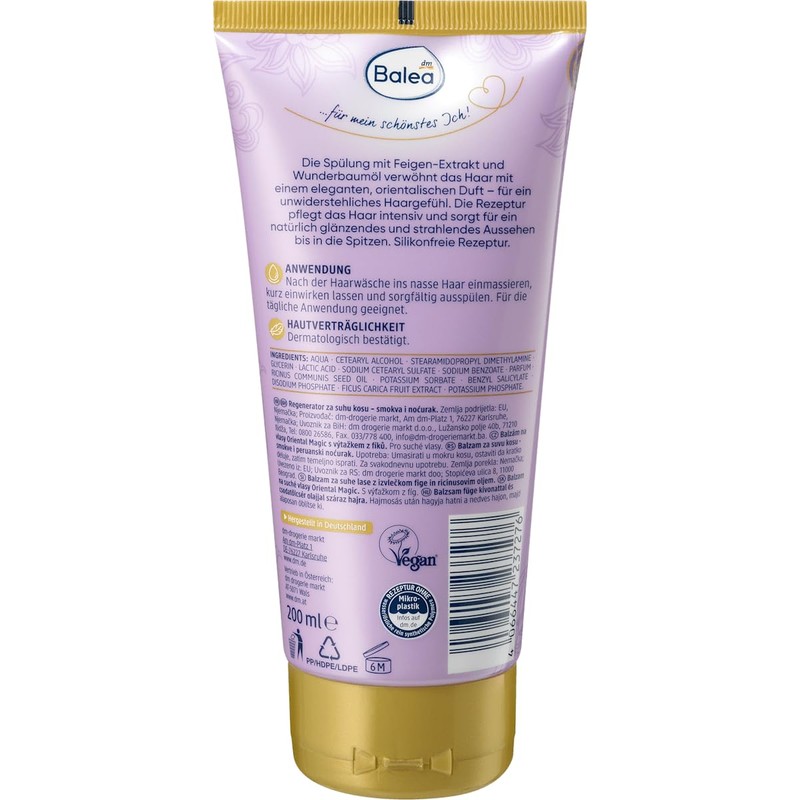 - Balea Spülung Oriental Magic, 200 ml: Ohne Alkohol. Ohne Silikone. Auf Ölbasis. Ohne Ammoniak. Vegan. Für eine intensive Pflege. Mit orientalischem Duft. Für einen natürlichen Glanz.