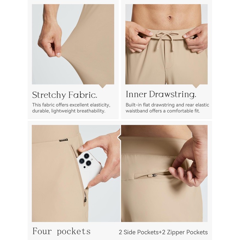 baleaf MMen's Golf Pants Stretch Quick Dry Lightweight Travel Hiking Workout Pant Zipper Pockets Khaki S