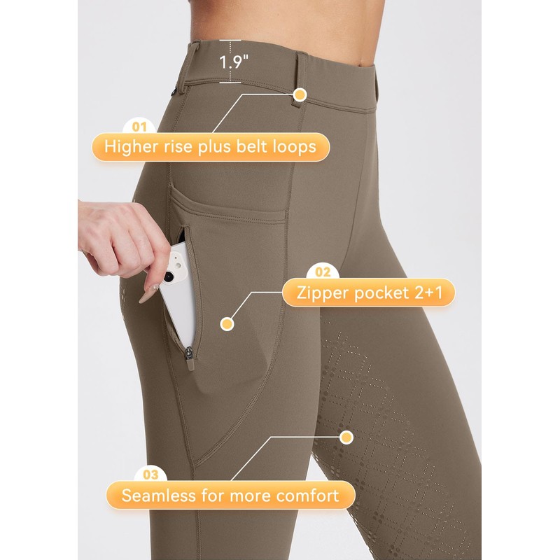 BALEAF - Pantalones de equitaci n de invierno para mujer, con forro polar, para montar a caballo y asiento completo, mallas ecuestres con bolsillos con cierre, Asiento completo caf , XS