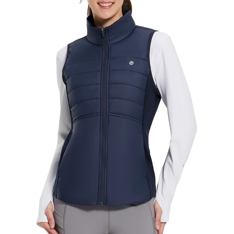 BALEAF Women's Lightweight Puffer Warm Vest Thermal Insulated Sleeveless Jacket Waterproof Outwear with Zip Pocket for Winter Outdoor Golf Running Hiking Clothing Navy Blue XL