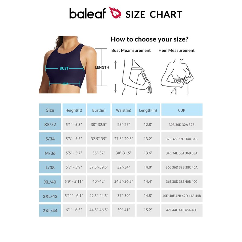baleaf Women's Swim Bra Tops Modest High Neck Push Up Crop Tank Bikini Top Athletic Sports Swimsuits Bathing Suit Under Rash Guard Dark Blue 34