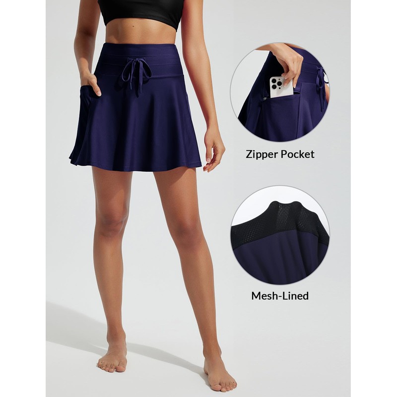 - Zipper Pocket+1 Inner Pocket: The swim skort features one side zipper pocket and one pocket on the right of the boyshort to store your phone,card,and sea pass card while enjoying your time at the beach