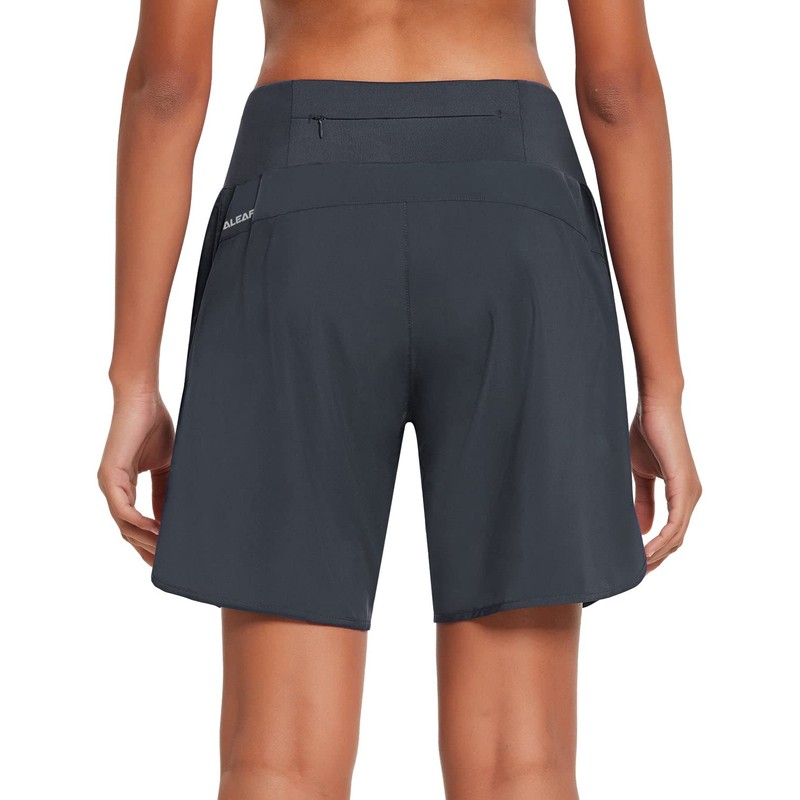 BALEAF Womens' 7" Long Running Shorts Back Zipper Pocket Lightweight Quick Dry Athletic Shorts with Liner Grey Size L