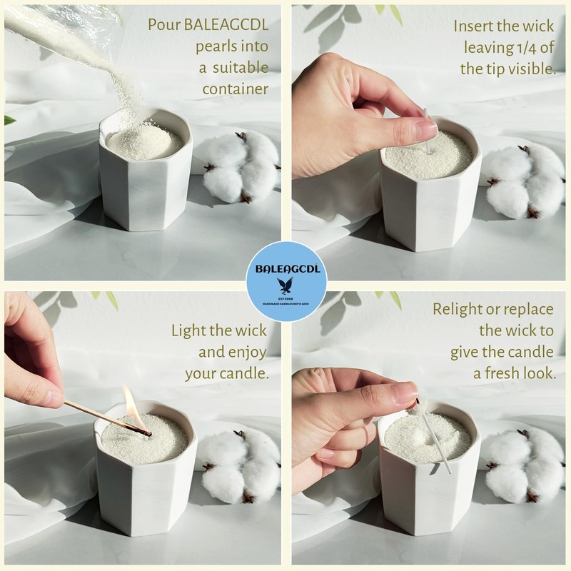 - HOW TO USE : Pour the sand of our pearl candle into your favorite container, put in one or more wicks, and you have a reusable candle! Each wick can be used for about 12 hours, or the wick can be replaced to give the candle a fresh look. (Keep in mind that the total burning time varies depending on how the candle is used.) We offer 30 2-inch wicks, and you can cut the wicks to the length you want