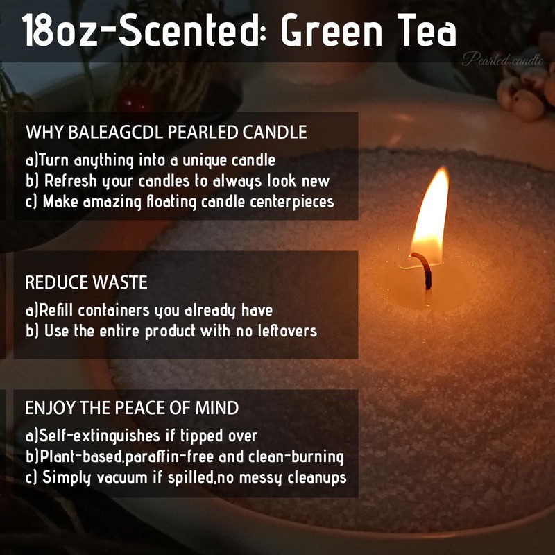 BALEAGCDL Pearled Candle 18 Oz with 30 Wicks - Green Tea Scented Sand Candles Light Green Refillable Wax Lasts up to 120 Hours - Smooth and Clean Burning for Candle Making