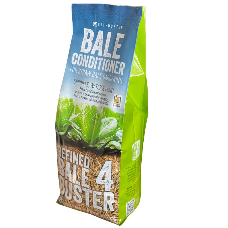 BaleBuster4 - Bale preparation formula for straw bale gardening, treats four bales, and includes Trichoderma Reesei fungal spores and Bacillus subtilis bacteria spores and nitrogen and other nutrients to feed bacteria in the bales and encourage rapid colonization and metabolic decomposition. Bales are ready to plant in just 12 days. This package includes the award winning book Straw Bale Gardens Complete, which details the entire process for setting up a garden and instructions on bale preparation and maintenance.