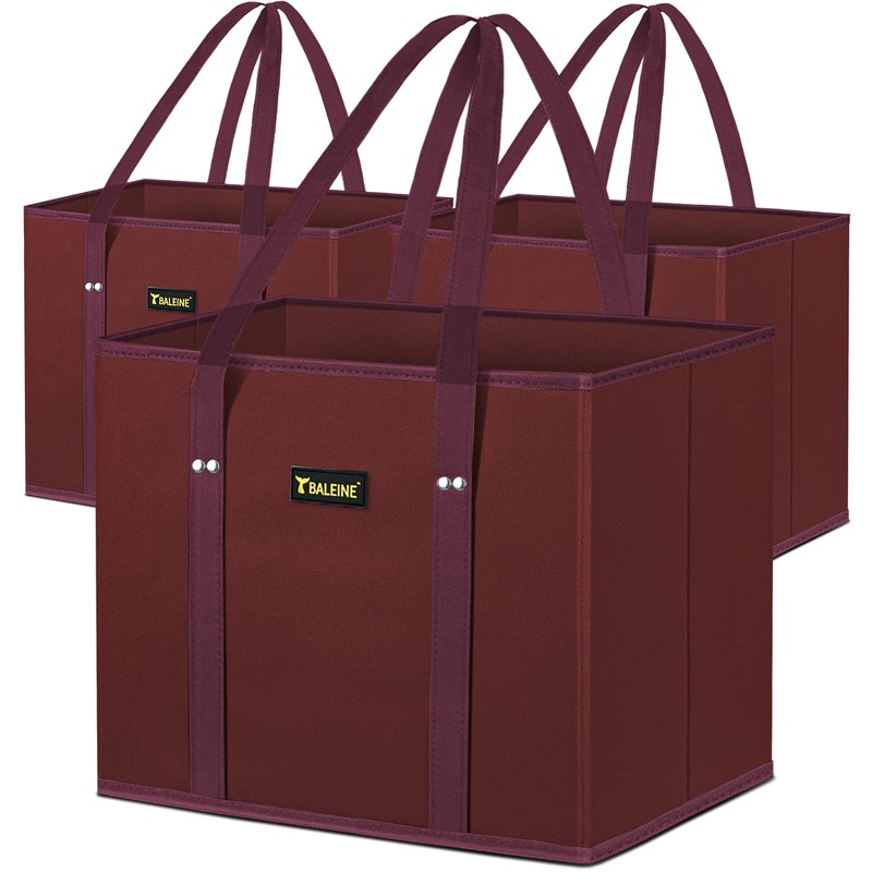 BALEINE 3Pk Reusable Grocery Bags, Foldable Shopping Bags for Groceries with Reinforced Bottom & Handles (Red)
