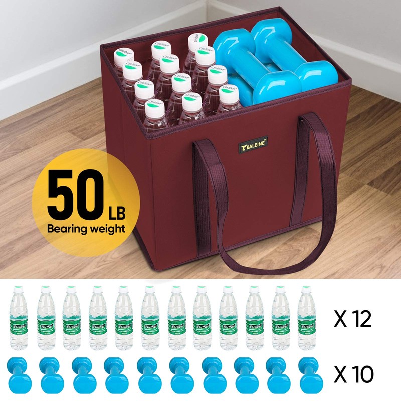 - EXTRA LARGE & STURDY: Spacious box shaped bags provide ample shopping space. Rigid design with reinforced bottom keeps the reusable grocery bags up for easy loading and unloading. Strong and extra-long (12'') handles fit tall items and allow shoulder carrying.