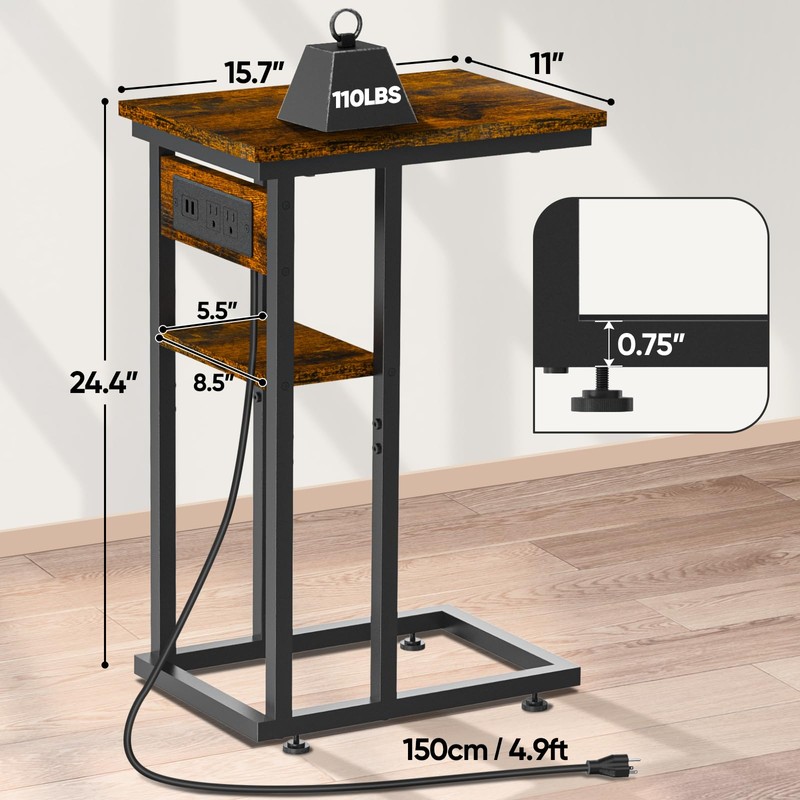 - [NIGHTSTAND WITH CHARGING STATION] This side table features a built-in charging station under the panel to prevent accidents caused by spilled drinks. With 2 USB ports and 2 power outlets, this smart table allows you to effortlessly charge your phone, tablet, desk lamp, or laptop without the need for extra power strips. In addition, the 4.9ft long power cable offers a great convenience.