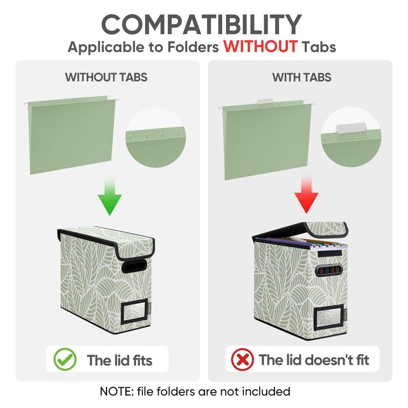 • [UNIVERSAL SIZE] Our file box with lid fits letter-sized files. It is designed for efficiency and functionality, with its smooth PVC slide rails on both sides, you can effortlessly slide file folders for easy access and neatly arranged. The lid fits snugly on the box after hanging folders. (NOTE: file folders are not included)