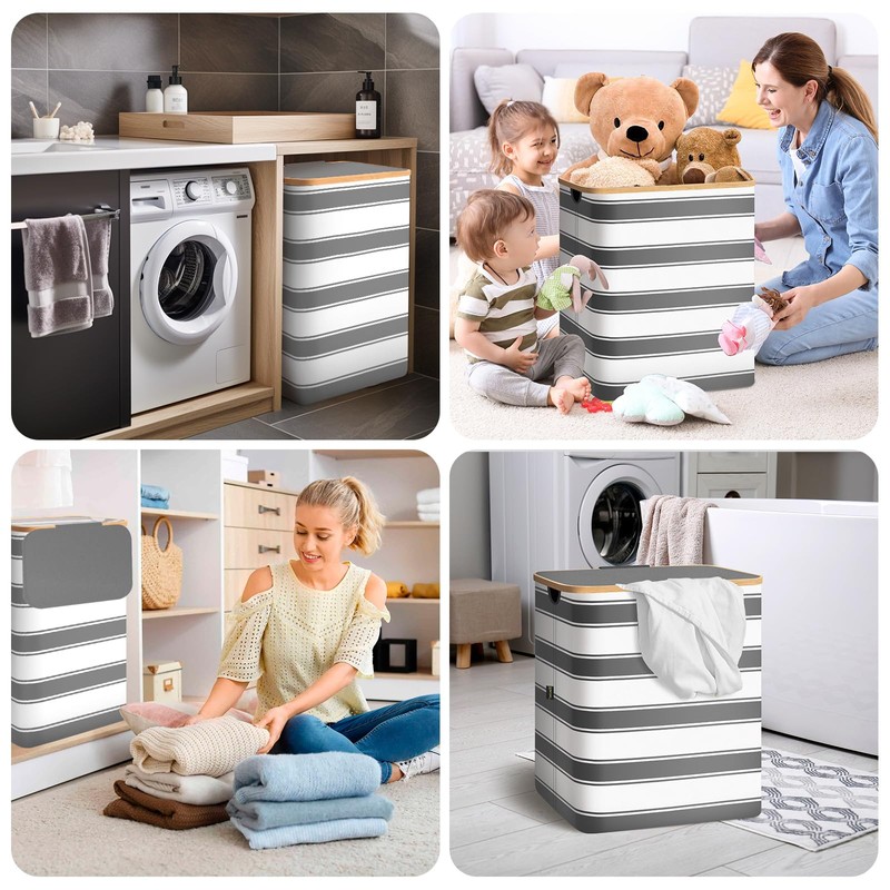 BALEINE Laundry Hamper with Lid, Tall Laundry Baskets with Bamboo Pull Handles, Large Laundry Bin with Internal Support (40 Gallon, Grey Stripe)