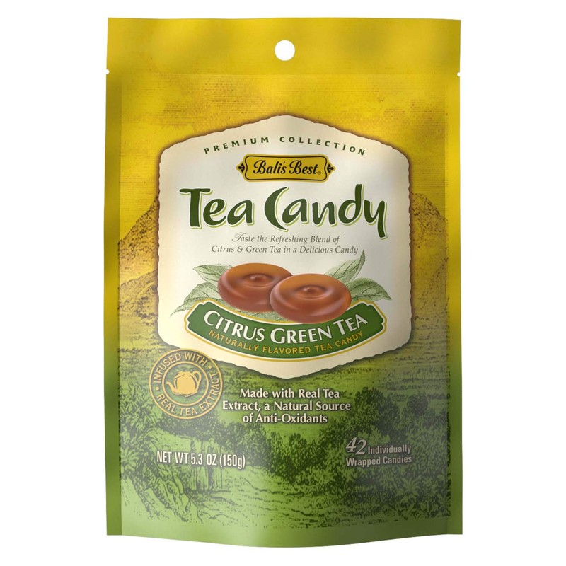 Bali's Best Citrus Green Tea Candy, 5.3 Oz (Pack of 12), Individually Wrapped Hard Candy, Made with Real Tea, with Natural Antioxidants, Halal