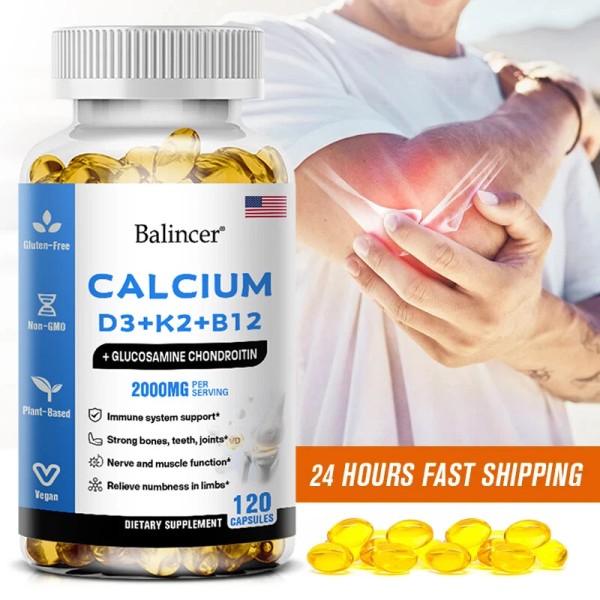 Balincer Calcium D3 + K2 + Vitamin B12 Strengthen Bones, Teeth, Joints 120 Capsules