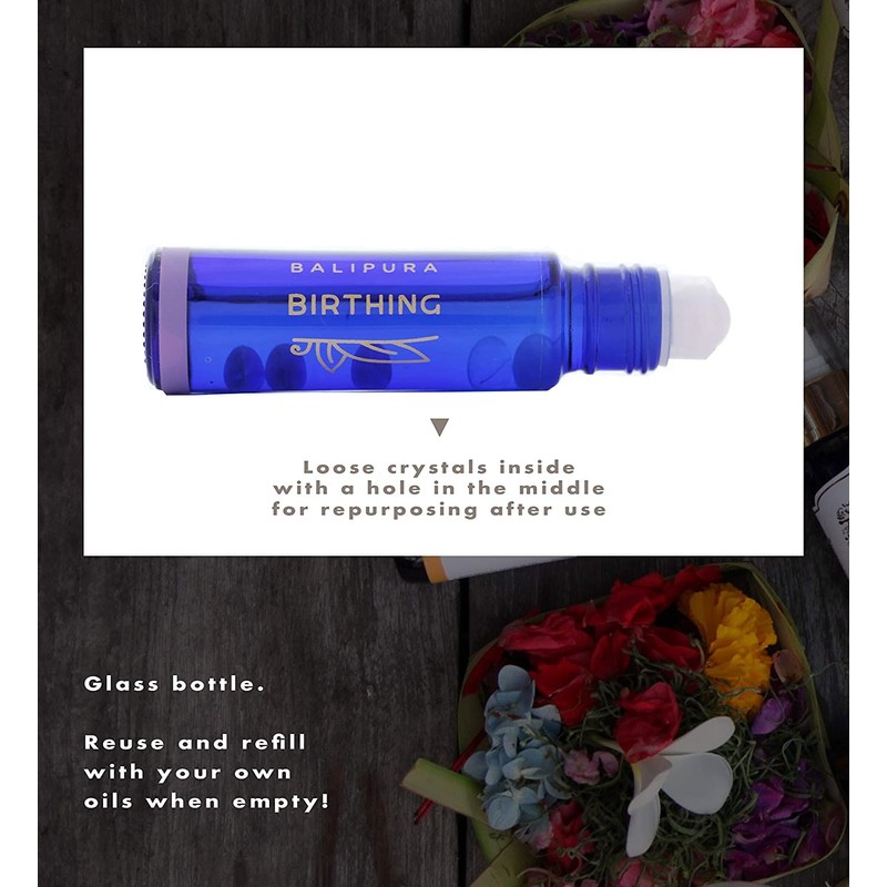BALIPURA - Crystal Aura Roll On - Birthing Natural Essential Oils - Moonstone, Amethyst Gemstones & Crystals - Essential Oil Blends - 0.34fl.oz