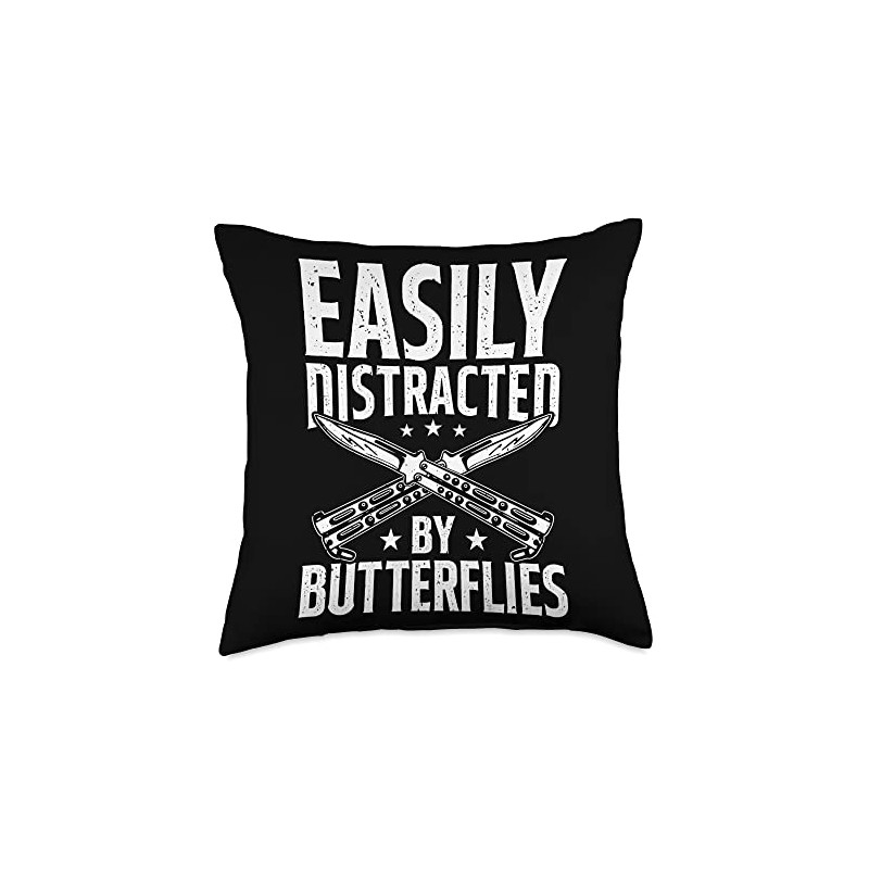 Balisong Butterfly Knife Lovers Apparel Co. Easily Distracted by Funny Balisong Butterfly Knife Lovers Throw Pillow, 18x18, Multicolor