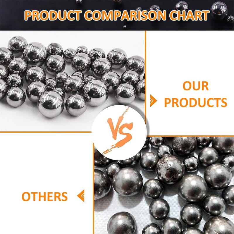 - Material: Our bearing balls are made of bearing steel material, have a high hardness, are strong and do not rust easily. The surface of the ball is polished and smooth, free from cracks, burrs and small items. When lubricated, it improves lubrication and prevents corrosion and rust.