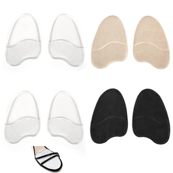 Ball of Foot Cushions for High Heels,4 Pairs Heels Cushion Pads,Non-Slip Comfortable Foot Cushions,Soft Gel Heel Pads,Forefoot Pads (Beige,Black and Clear)