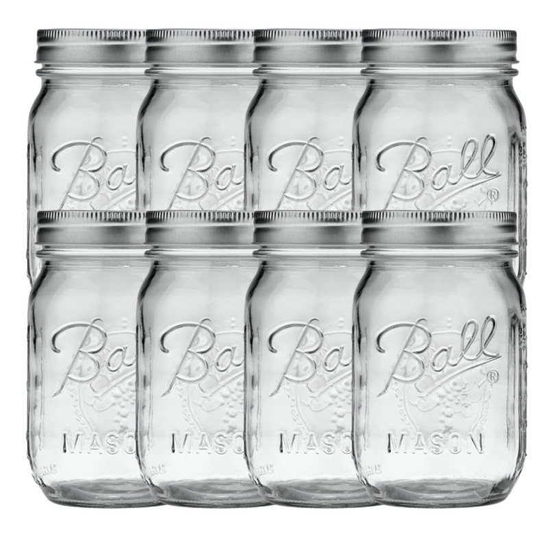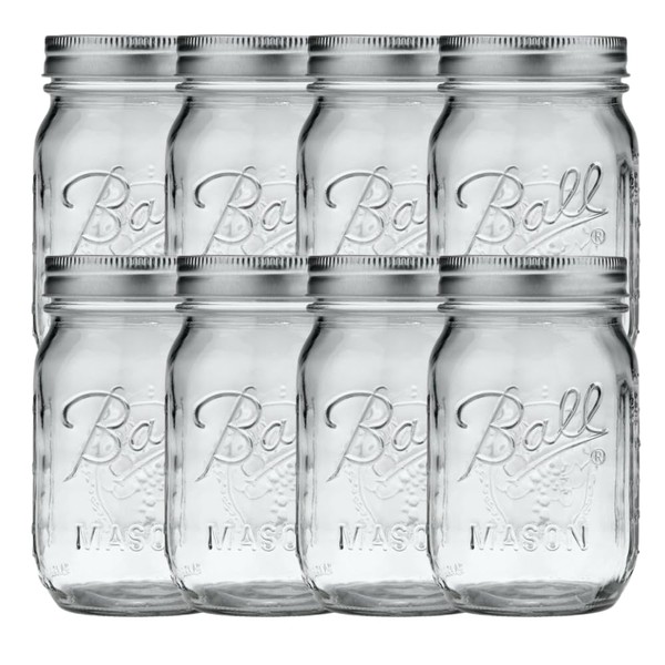 Ball Regular Mouth Pint (16 oz.) Mason Jars with Lids and Bands, for Canning or Drinkware, 8 Count
