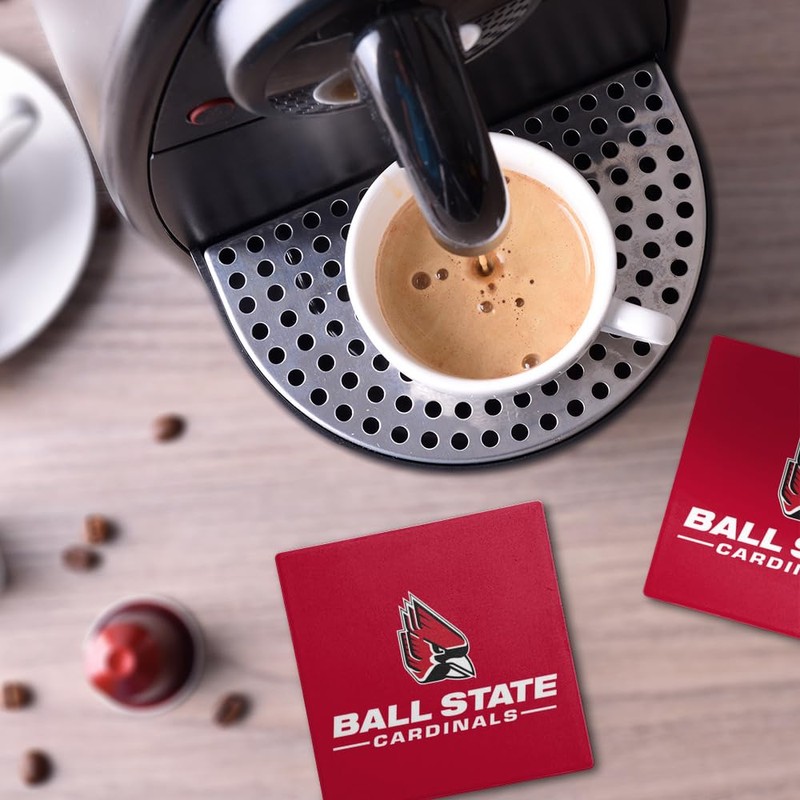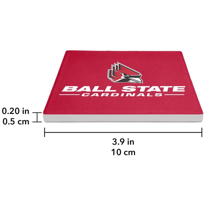 Ball State Primary Logo Square Ceramic Coasters, Set of 2, 3.9", Cork Base