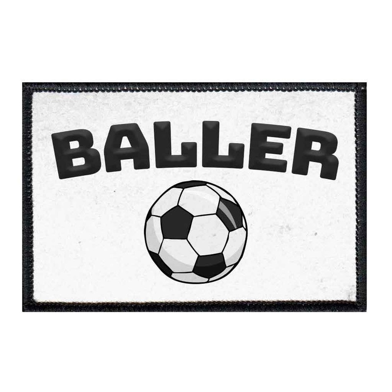 Baller - Soccer Morale Patch | Hook and Loop Attach for Hats, Jeans, Vest, Coat | 2x3 in | by Pull Patch
