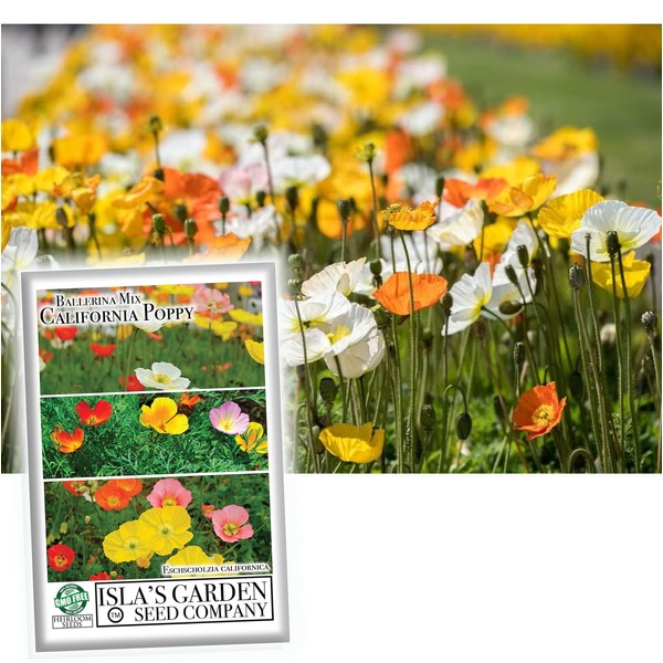 Ballerina California Poppy Mix - California Poppies, 1000+ Flower Seeds Per Packet, (Isla's Garden Seeds), Scientific Name: Eschscholzia californica, 85% Germination Rates, 99.3% Purity