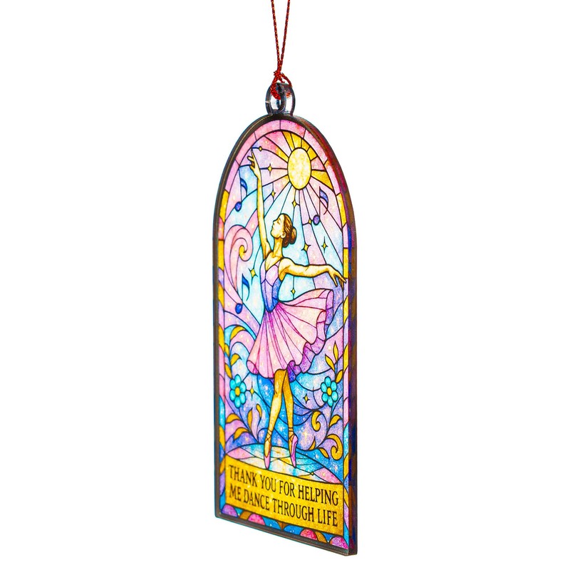 Ballet Dancer Ornament – Dance Teacher Appreciation Gift | Thank You for Helping Me Dance Through Life – Stained Glass Effect Suncatcher