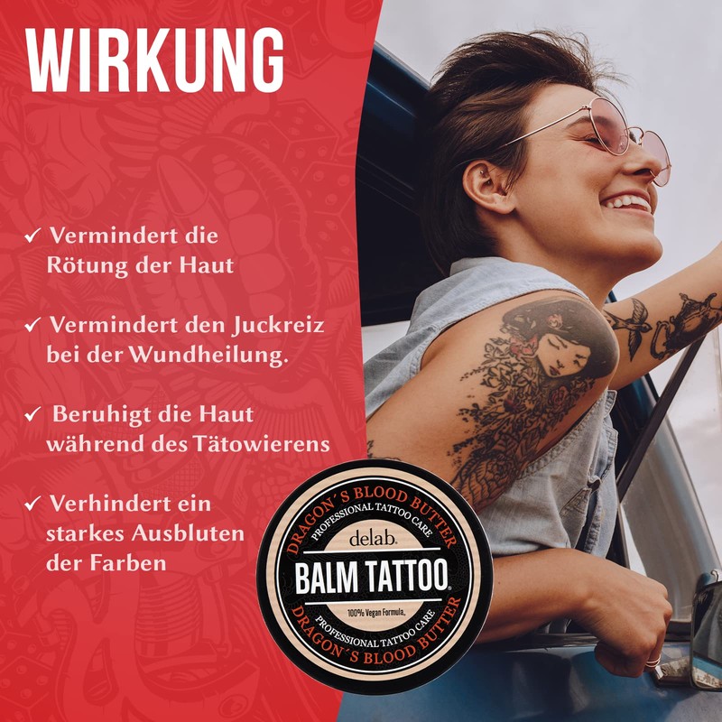 - TATTOO-PFLEGE: Die Dragon's Blood Butter bereitet die Haut perfekt auf das T?towieren vor. Dragon's Blood pflegt und versorgt die Haut vor, w?hrend und nach dem T?towieren mit Feuchtigkeit und macht sie geschmeidig.