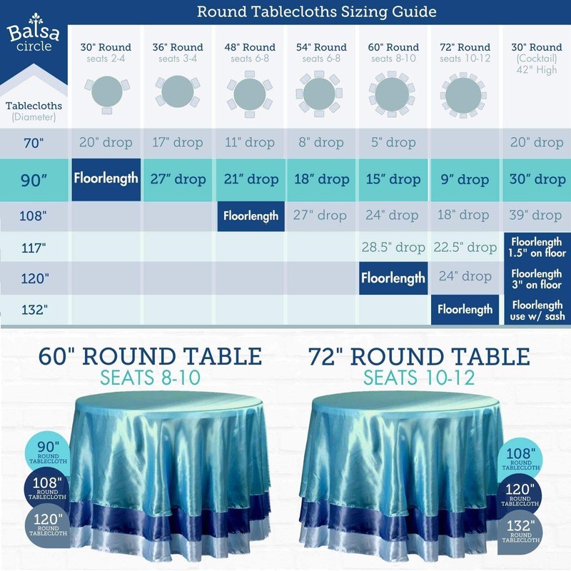 - MEASUREMENTS – Each tablecloth measures approx 90" in diameter. Use them at wedding ceremonies and receptions, bridal showers, baby showers, quinceaneras, anniversary parties, or any other special events.