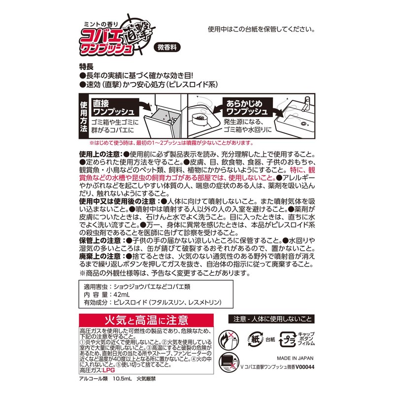 Balsan Flies Direct Attach One Push for 200 Times, Microscent Mint (Direct and Pre-W Effect with 2 Effective Ingredients)